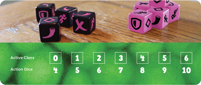 Roll the appropriate number of action dice. Re-roll any of the dice up to two times.